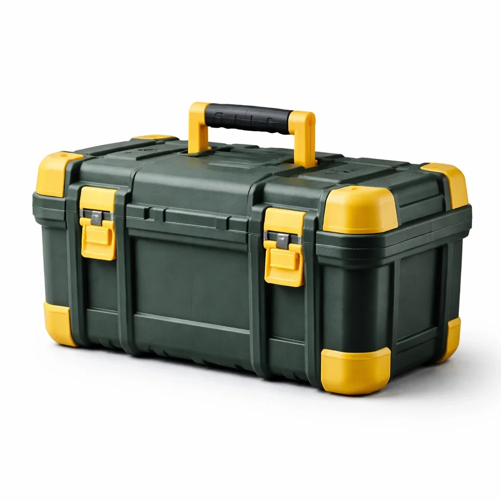 Boîte à outils en plastique bleu noir avec poignées métalliques