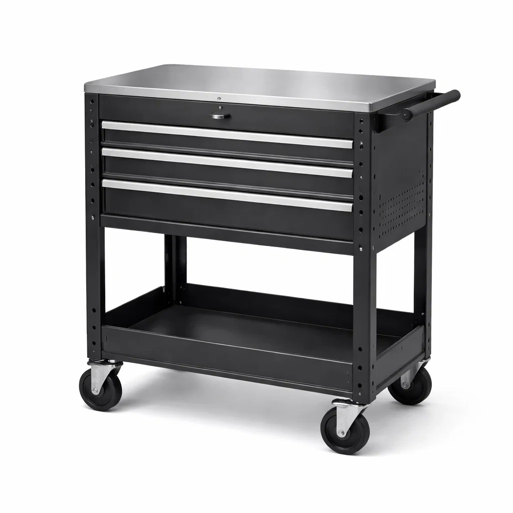 Chariot à outils en acier noir avec tiroirs et roulettes