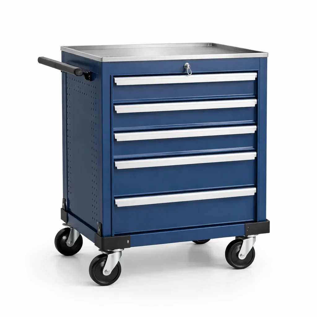 Chariot à outils en acier inoxydable bleu avec tiroirs
