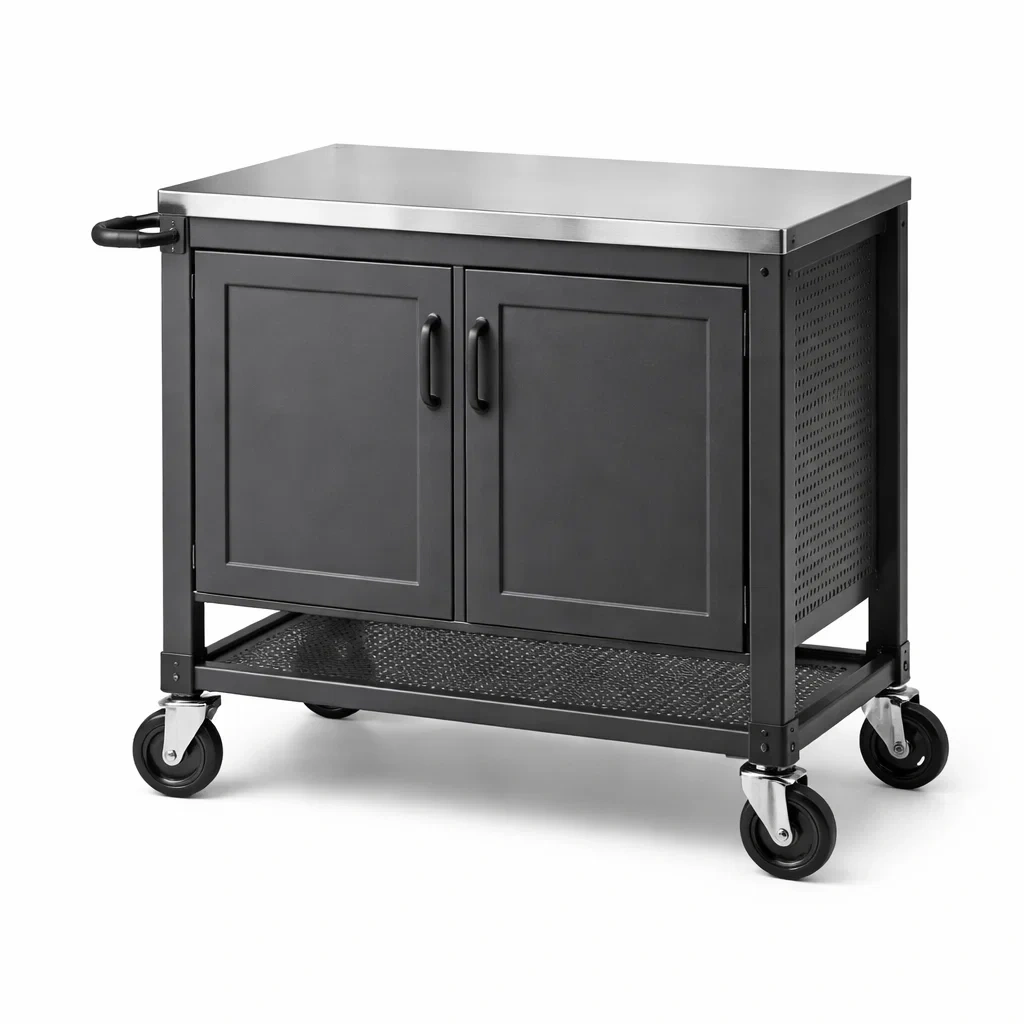 Chariot à outils en acier inoxydable noir avec portes battantes