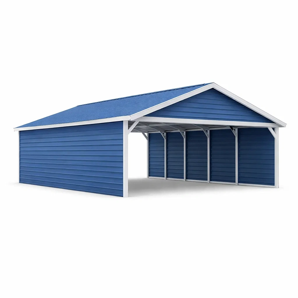 Structure en métal galvanisé avec revêtement en acier bleu.