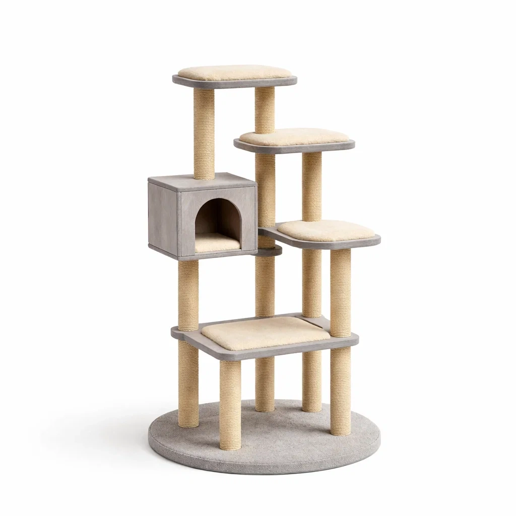 Matériau : Structure principale en panneaux de particules, sisal pour les poteaux, revêtement en polyester pour les plateformes
