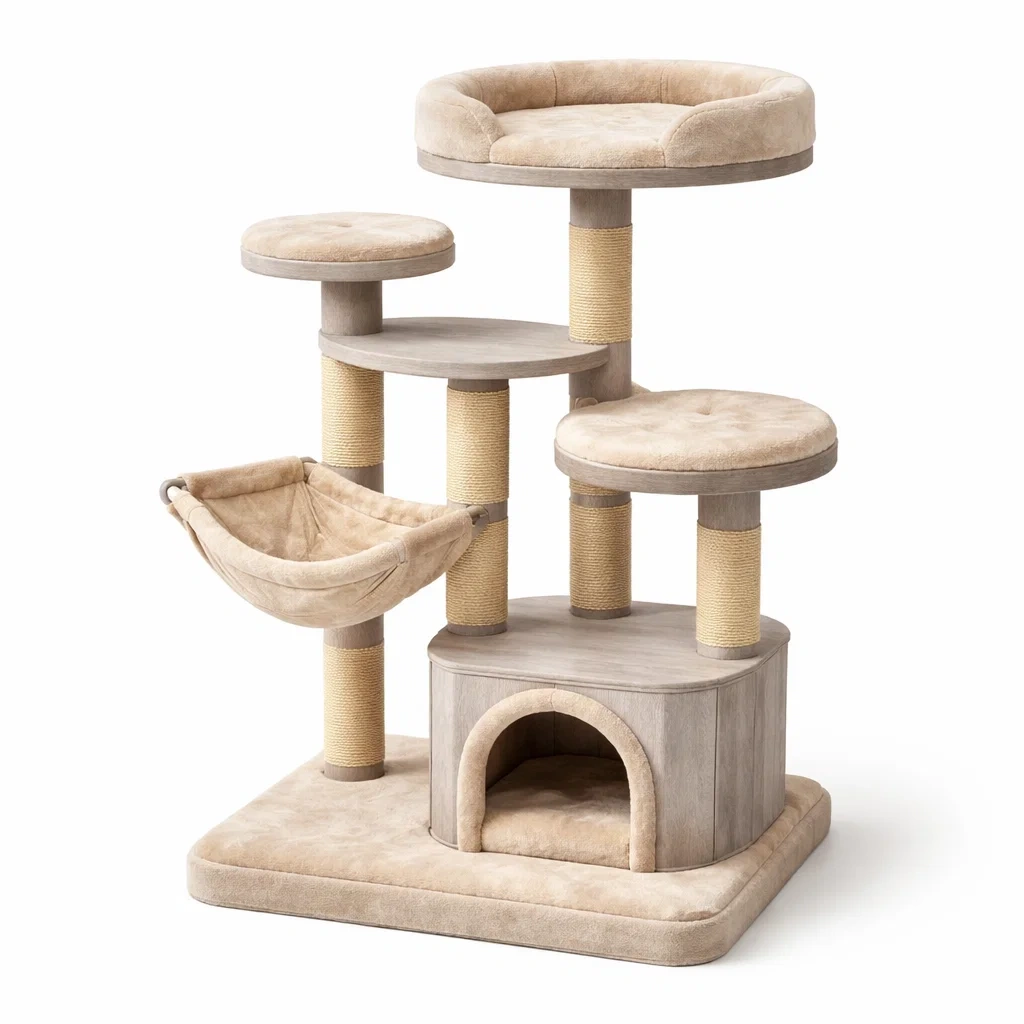 Inclus : Arbre à chat avec plusieurs plateformes, hamac et niche
