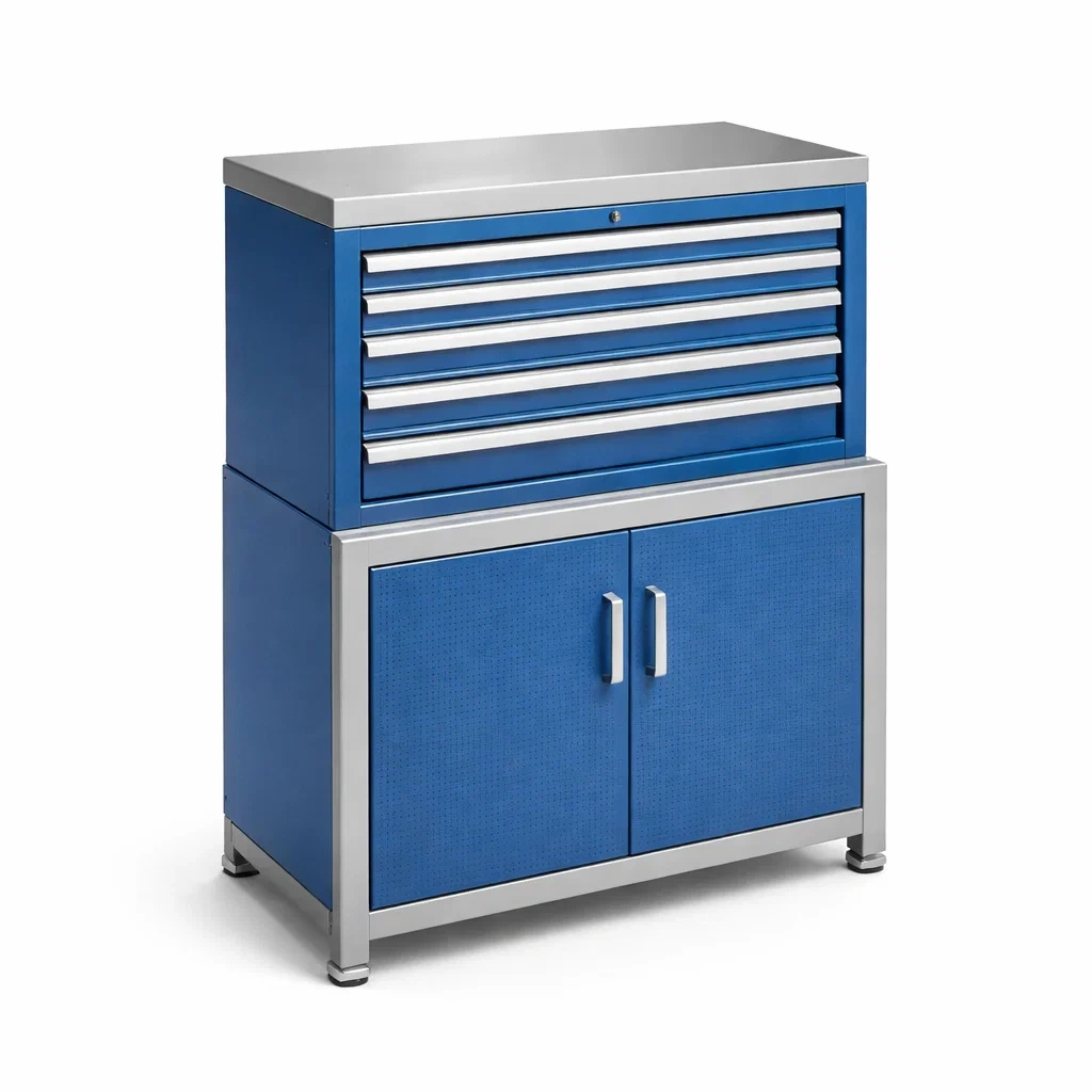 L'armoire à outils est construite en acier avec une finition en peinture époxy. Elle mesure 100 cm de hauteur, 85 cm de largeur et 50 cm de profondeur. Elle est de couleur bleue et pèse 50 kg.