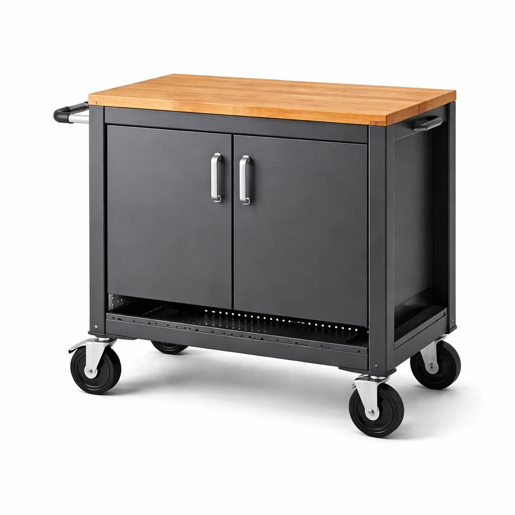 - Fonctionnalités : Roulettes verrouillables, portes de rangement