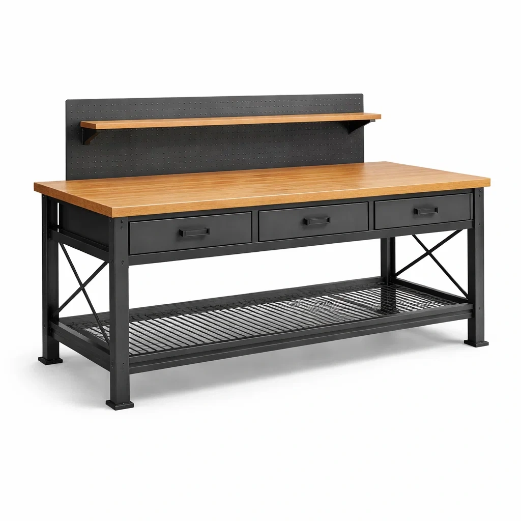Établi multifonctionnel avec espace de rangement.