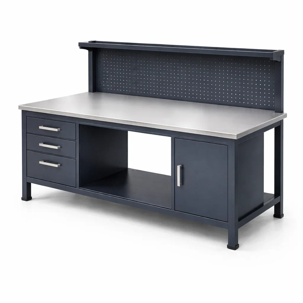 Établi en métal avec dessus en acier inoxydable